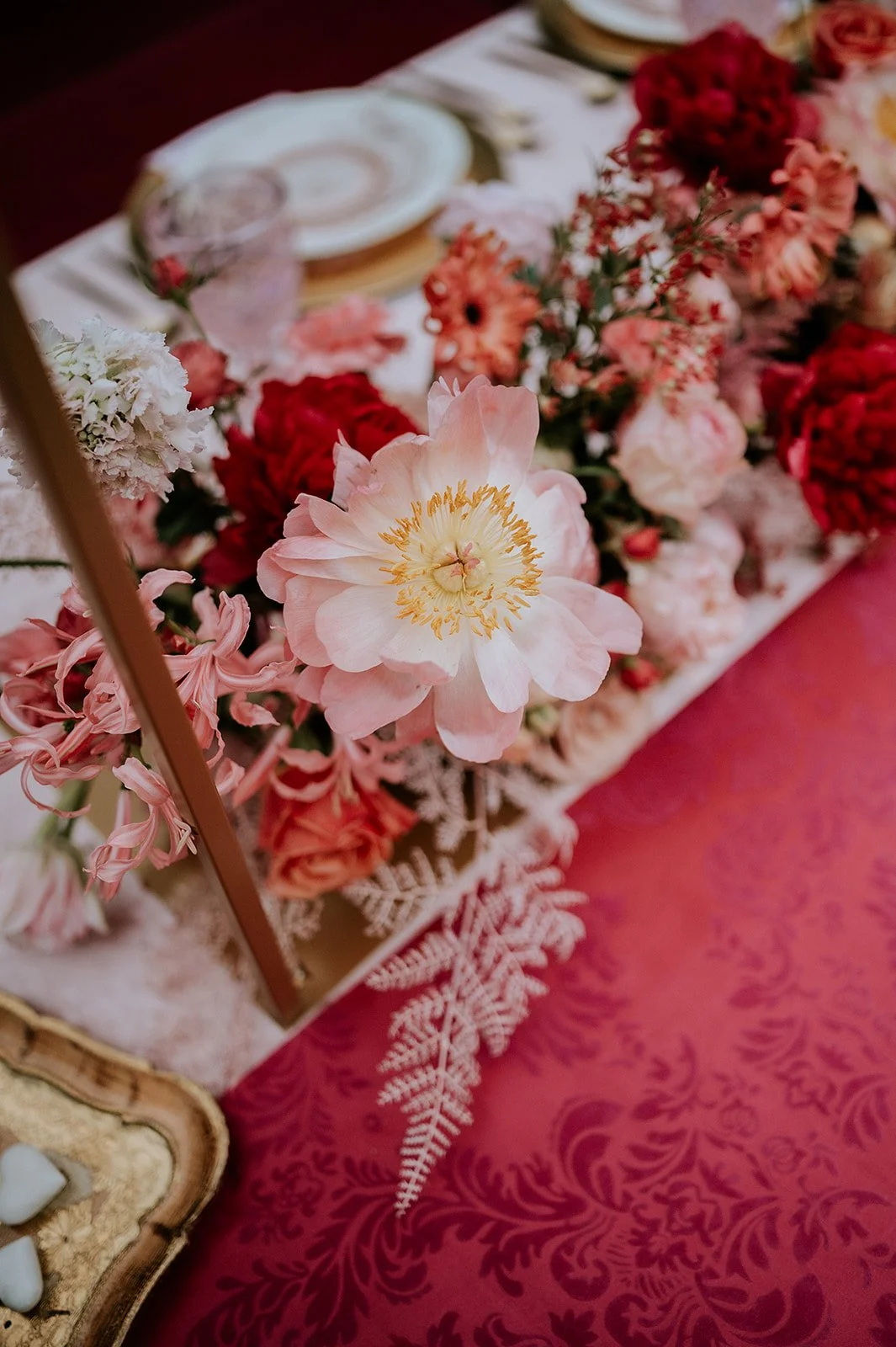 We loved collabing with this wonderful vendor team with tones of pinks, ivories, reds, and greens. We think Madonna herself would be impressed!